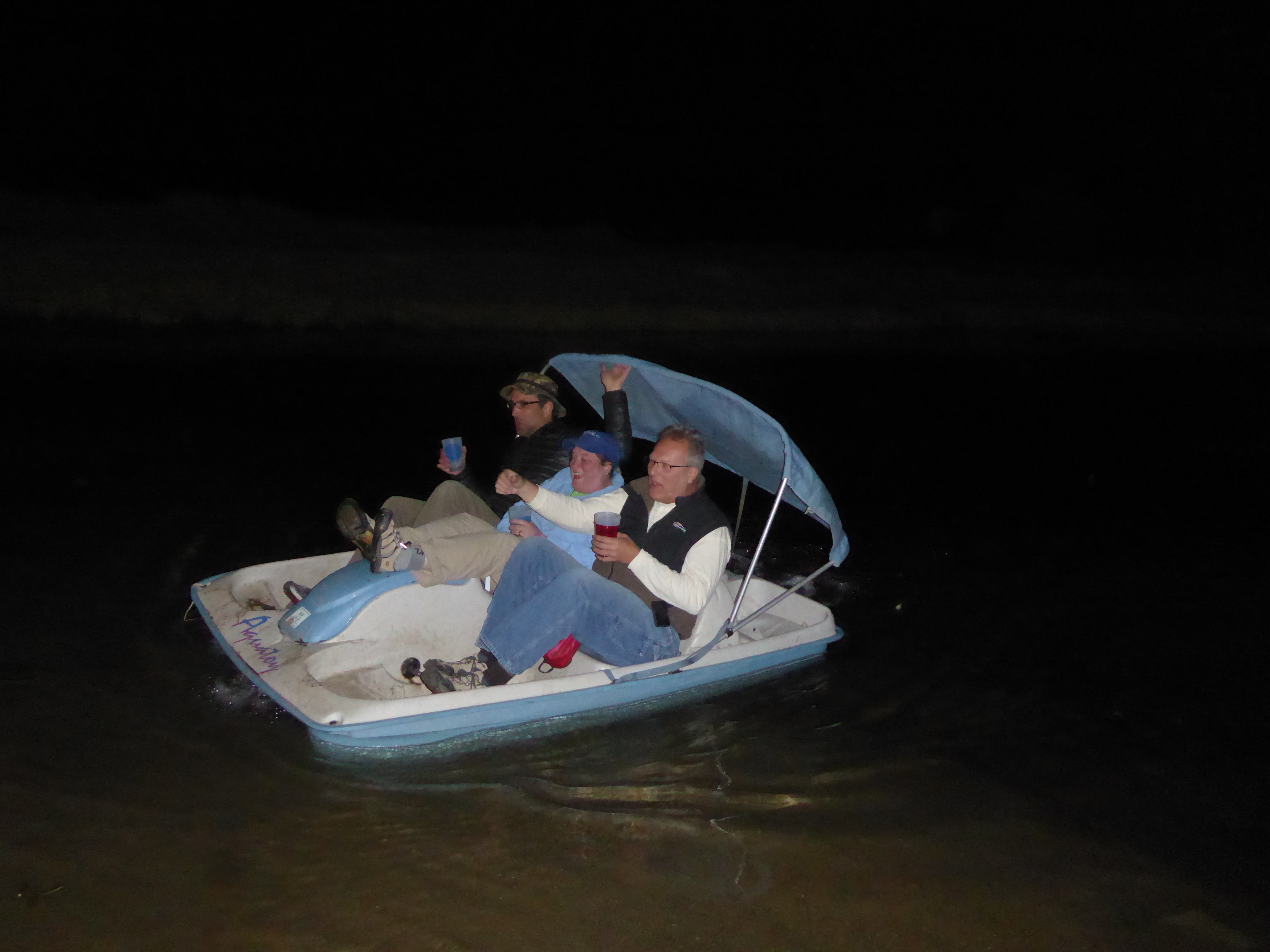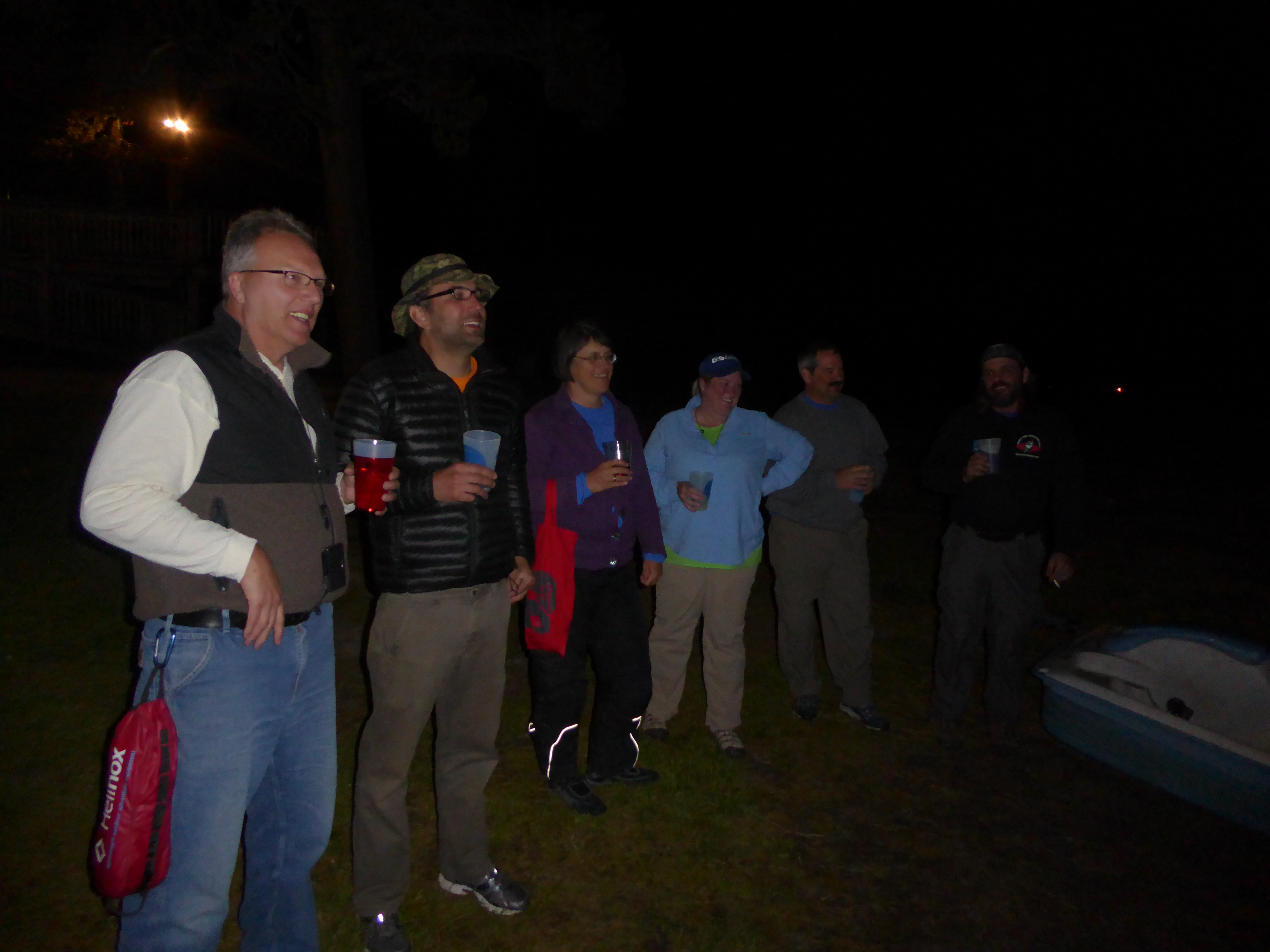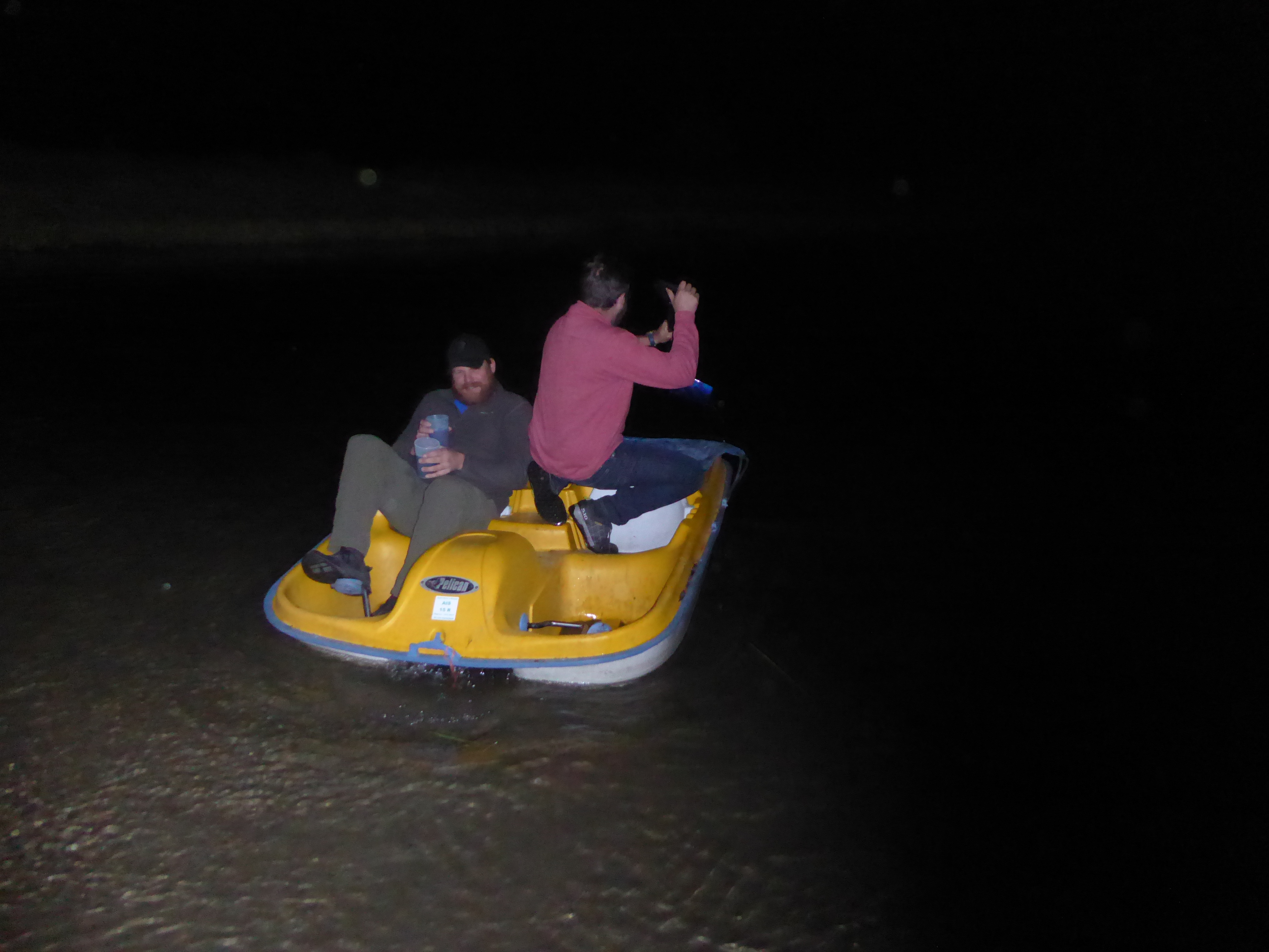 Bei Ankunft dort, empfängt uns gleich Casey vom vormittäglichen Parkplatz. Er erkennt uns wieder und nimmt uns gleich unter seine Fittiche. Er besorgt uns einen freien Zeltplatz, gleich neben seinem, macht uns 2 Teller vom freien Abendessen voll, macht uns überall miteinander bekannt, organisiert Bier, lädt zum Feuer, sorgt für Alleinunterhaltung (s. Photo!)