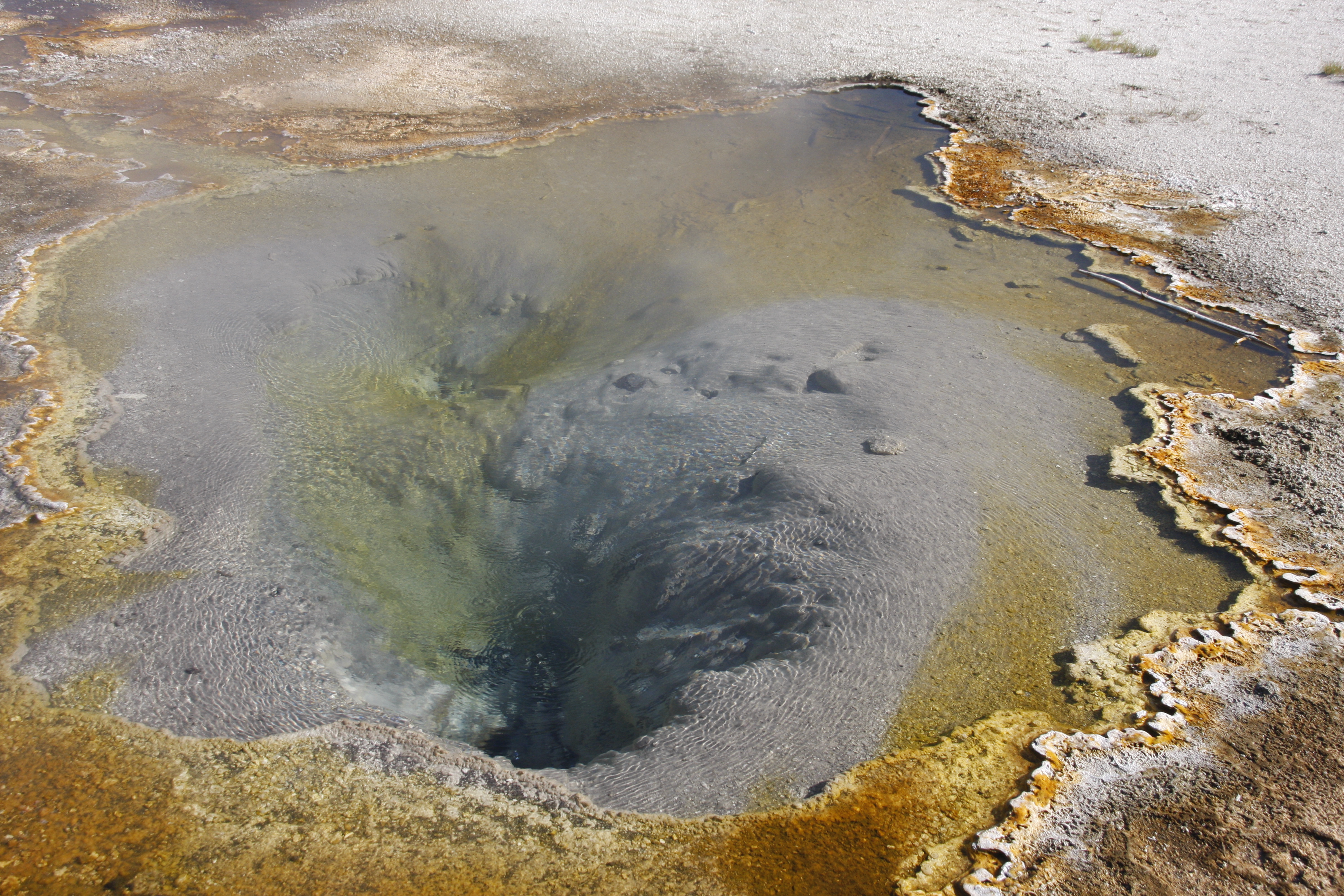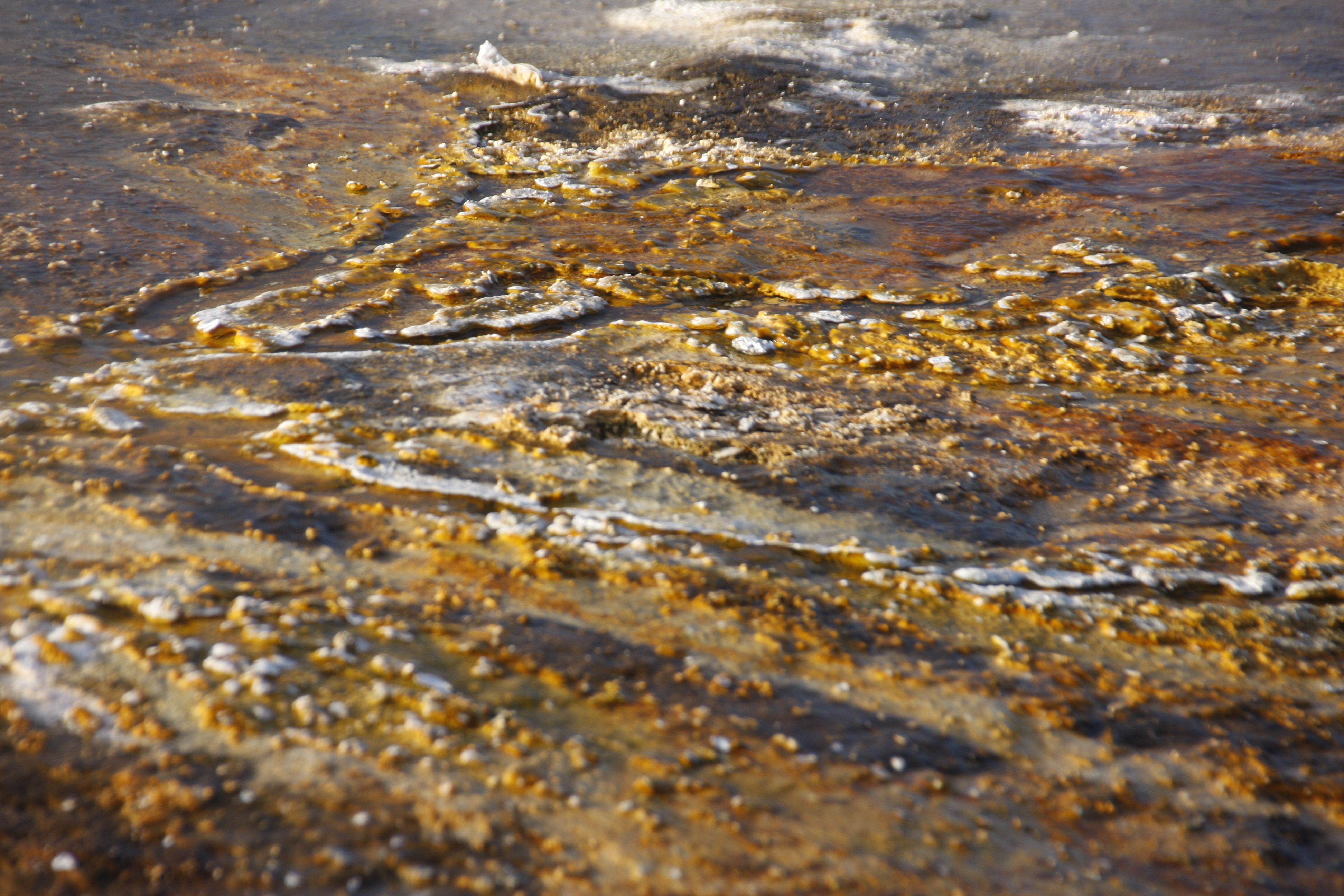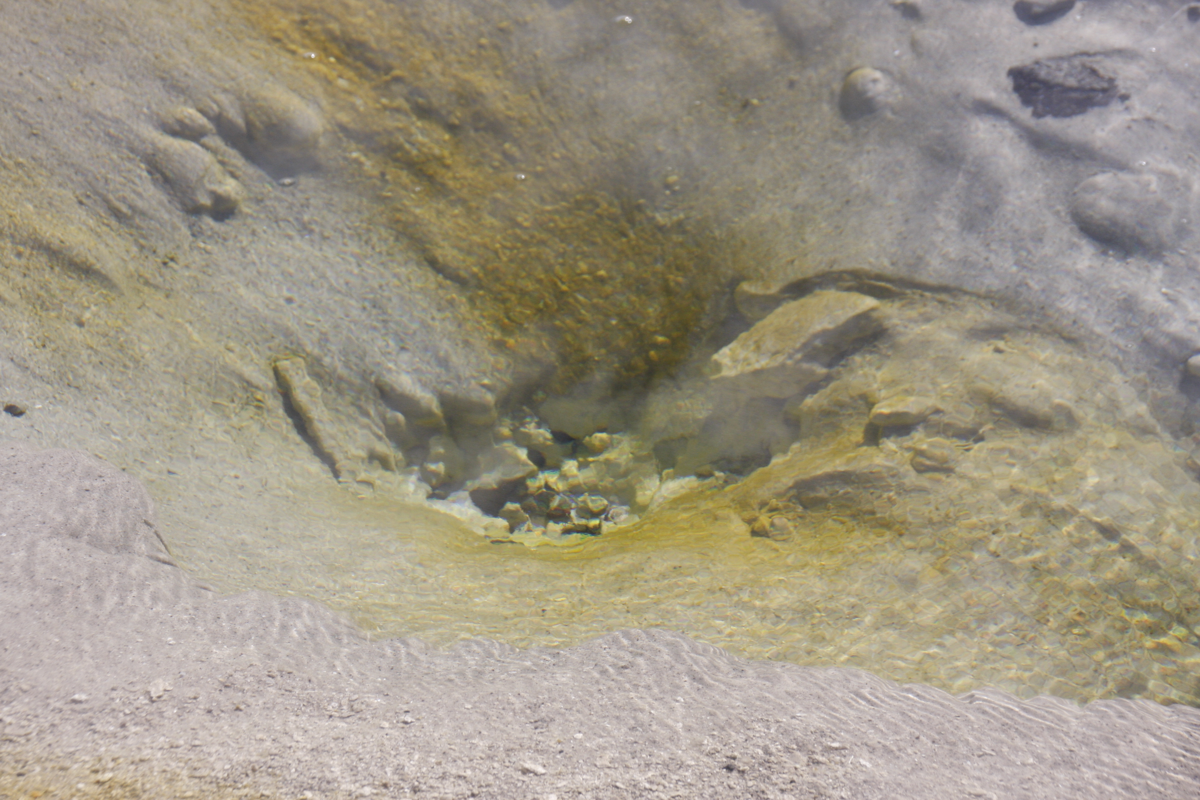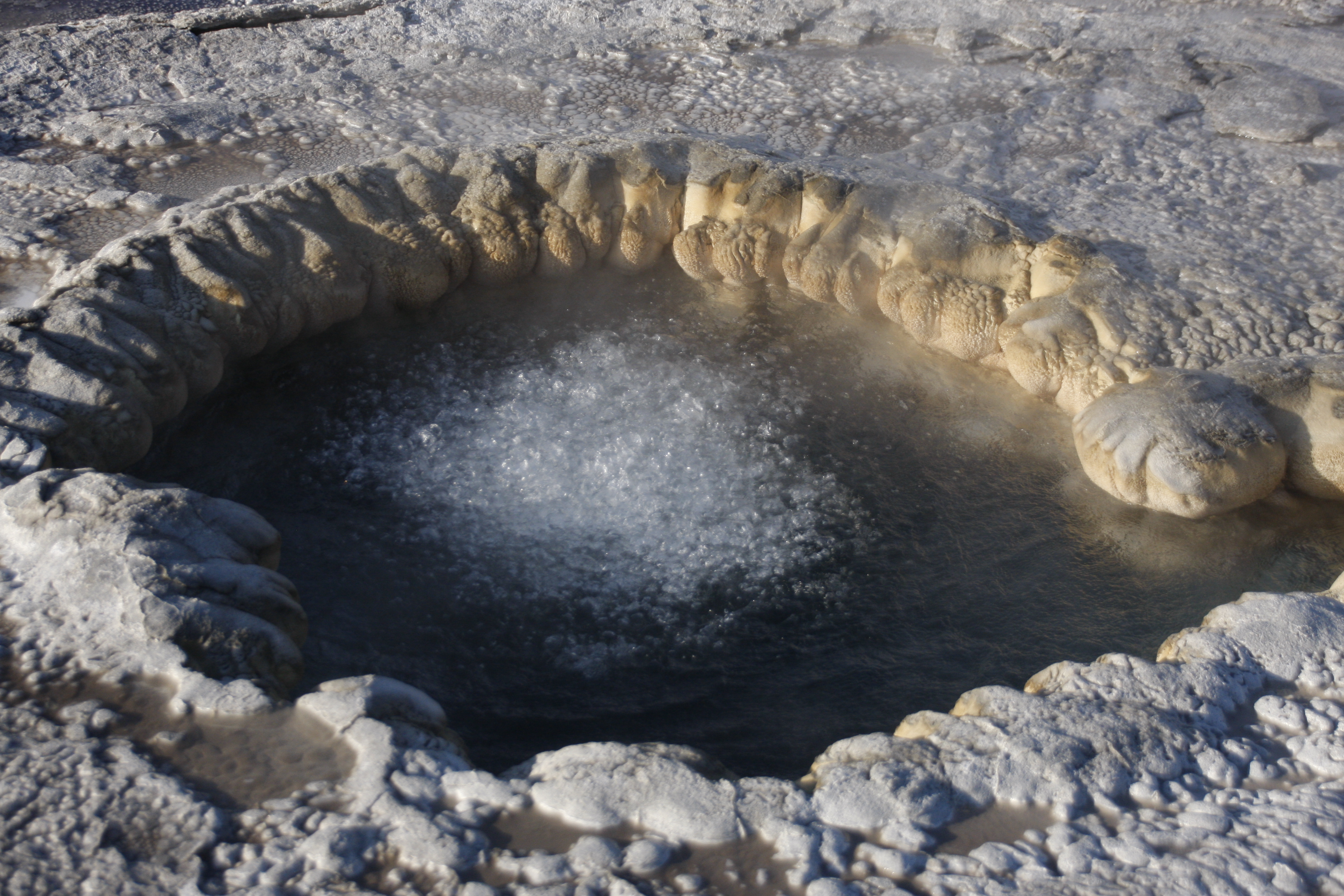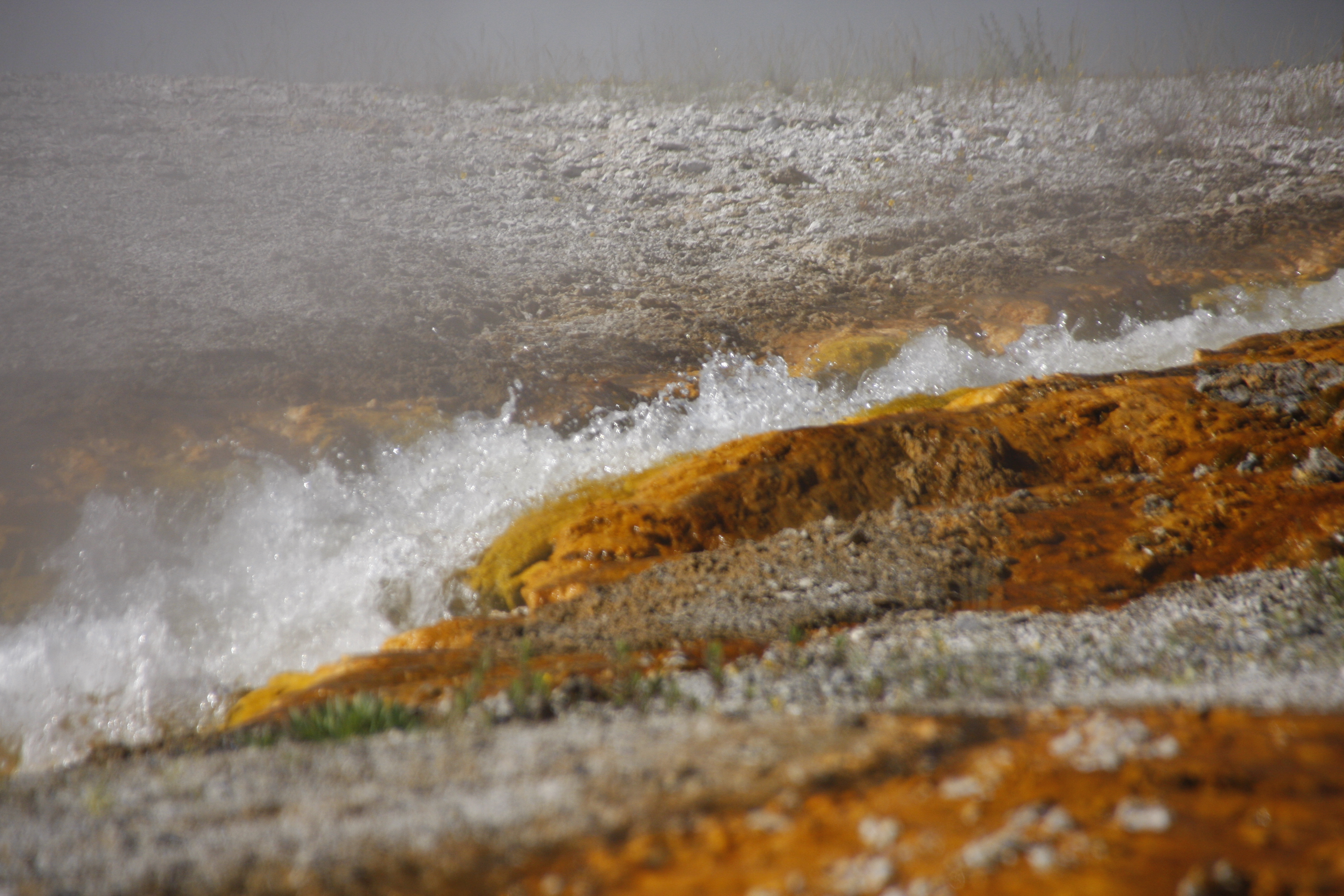 die meisten Leute gehen hier achtlos dran vorbei, aber etwas Geduld wird hiermit belohnt: vorher – nachher (diese und alle folgenden Bilder aus der nahen Region um Old Faithfull herum)