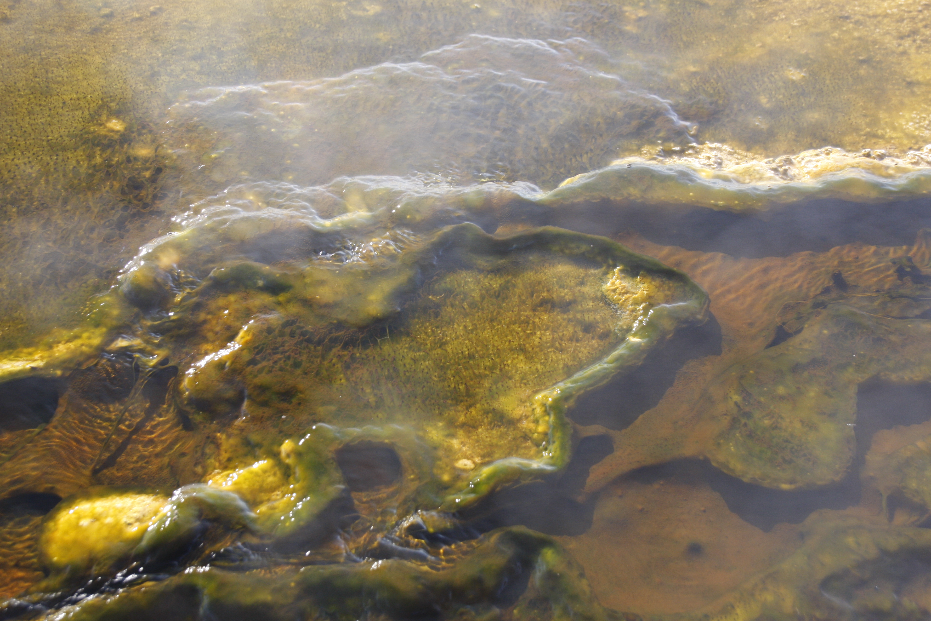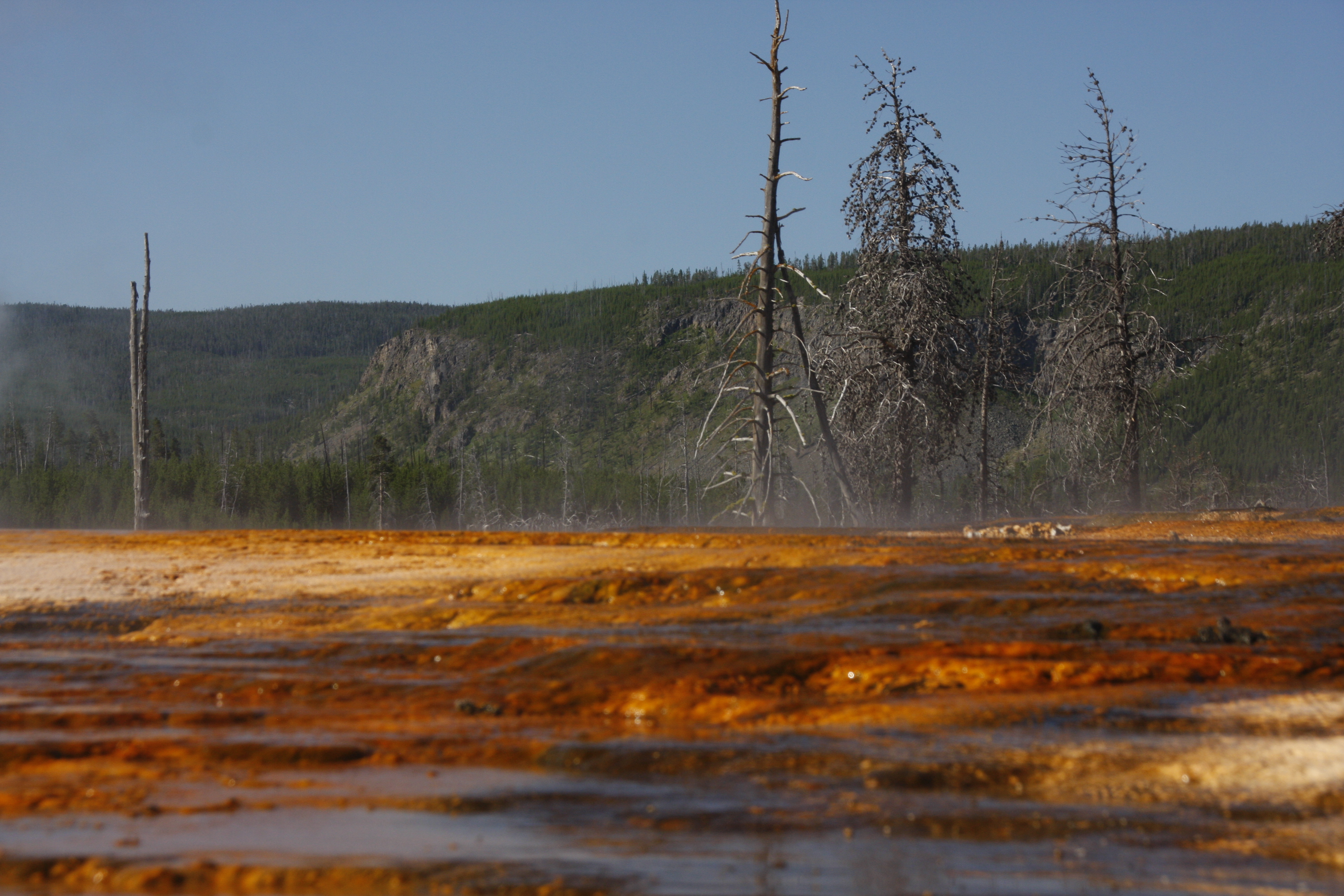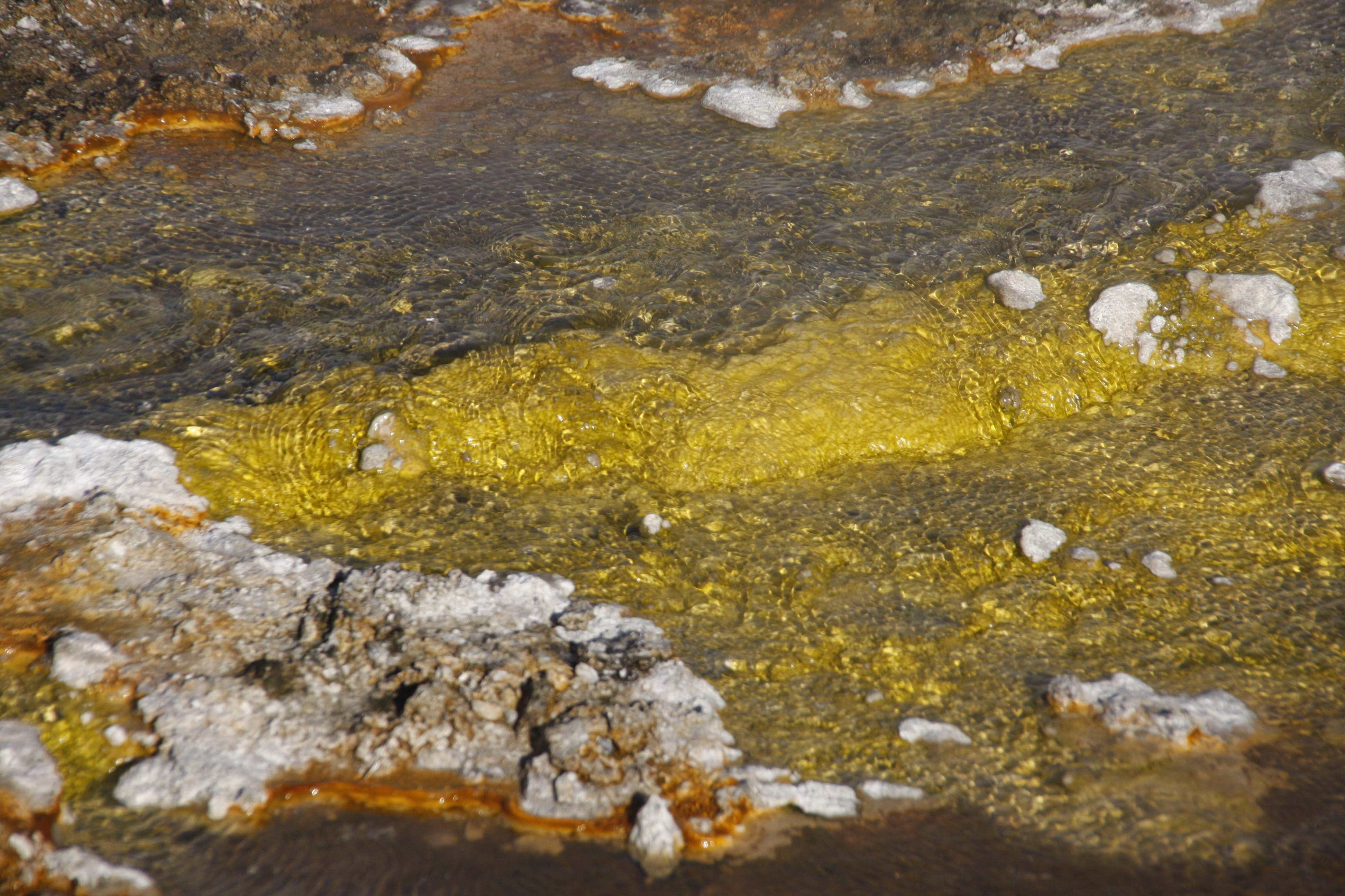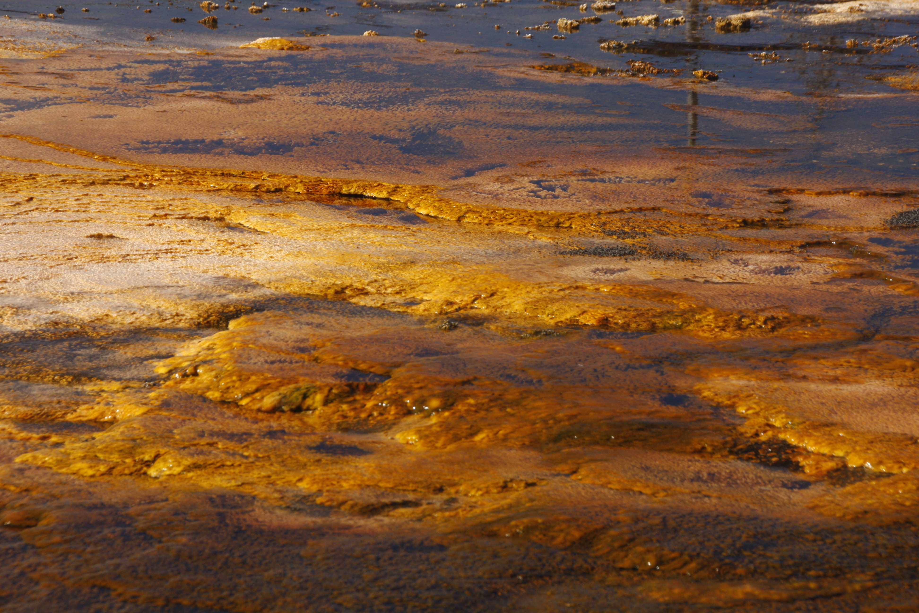 die meisten Leute gehen hier achtlos dran vorbei, aber etwas Geduld wird hiermit belohnt: vorher – nachher (diese und alle folgenden Bilder aus der nahen Region um Old Faithfull herum)