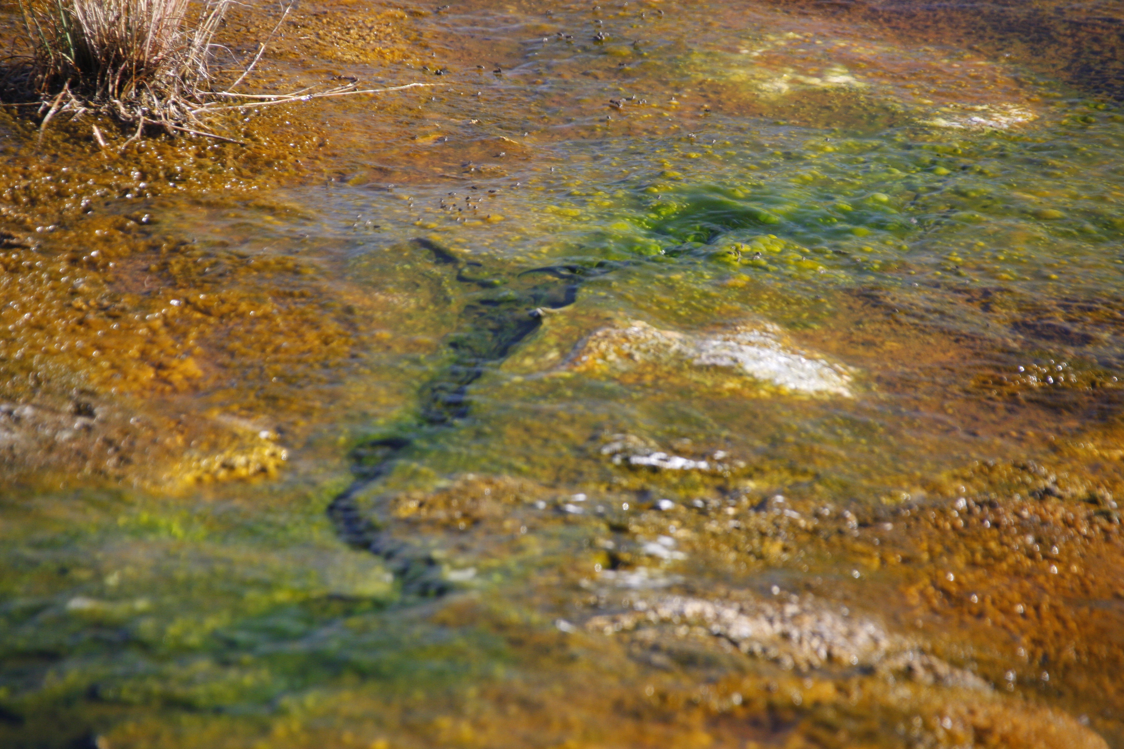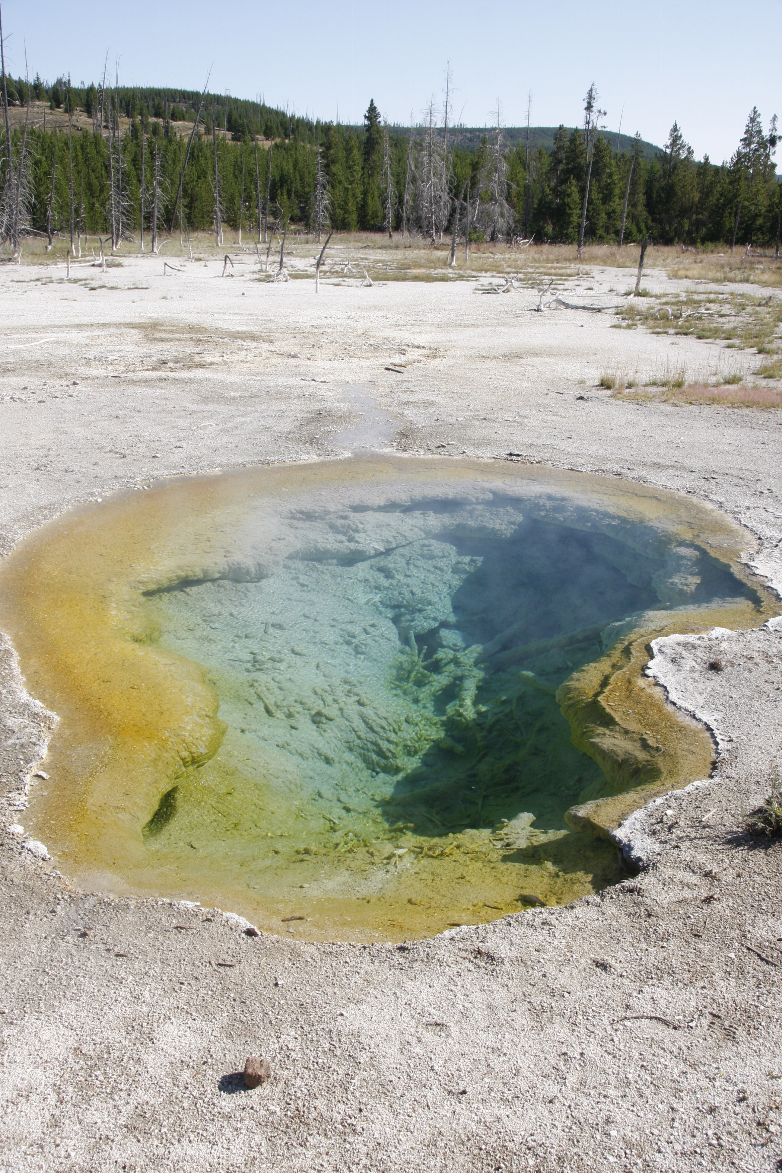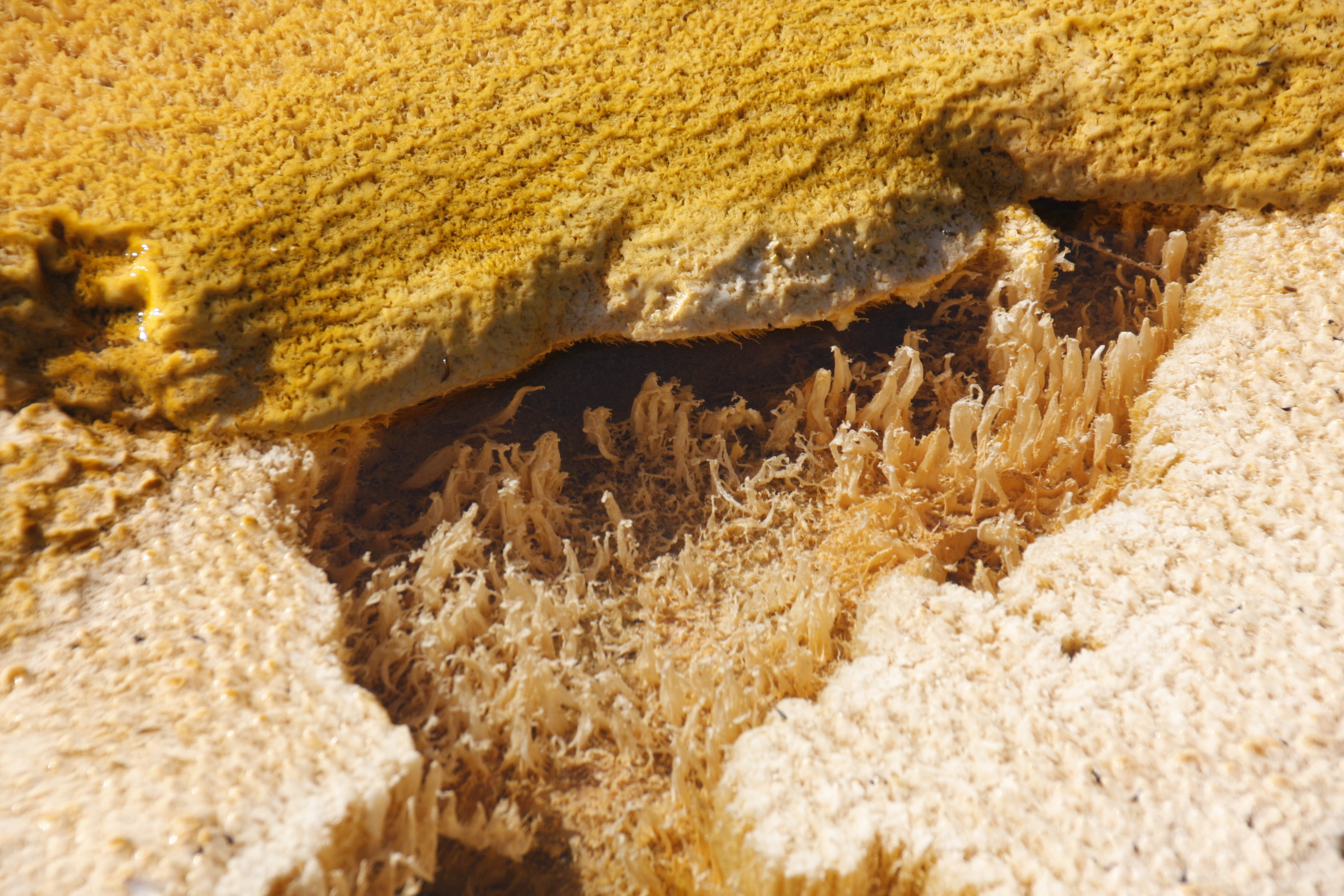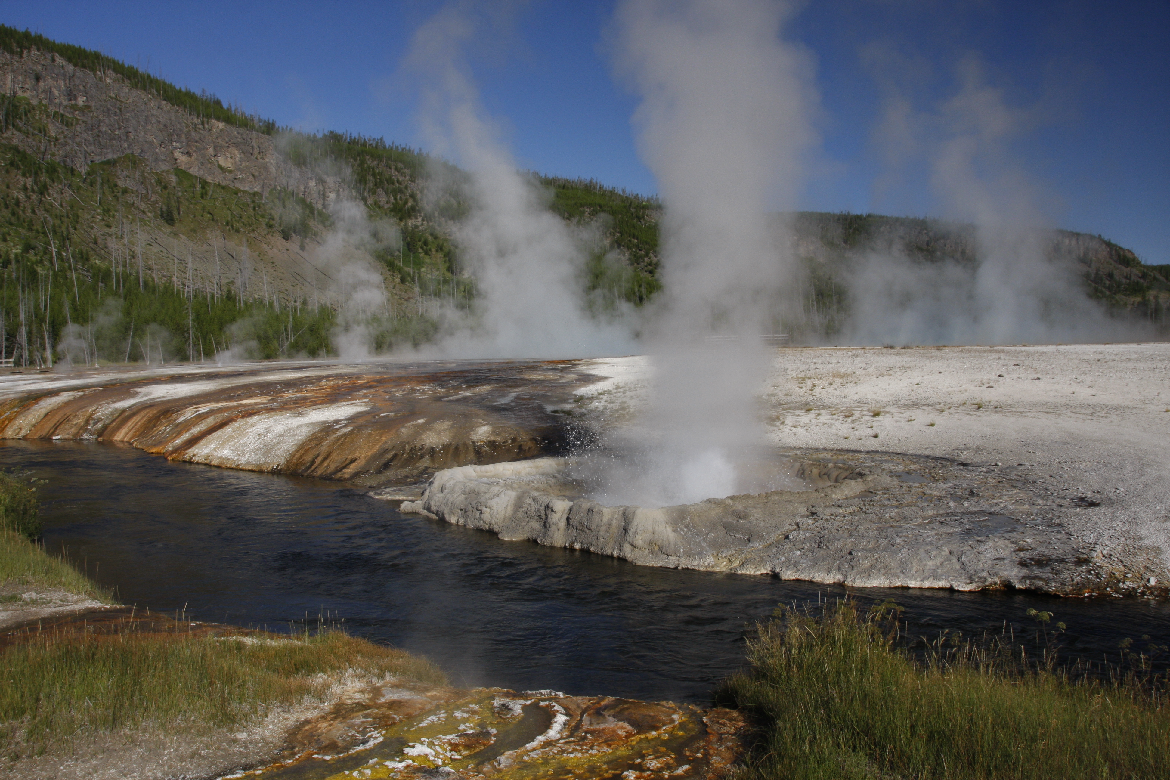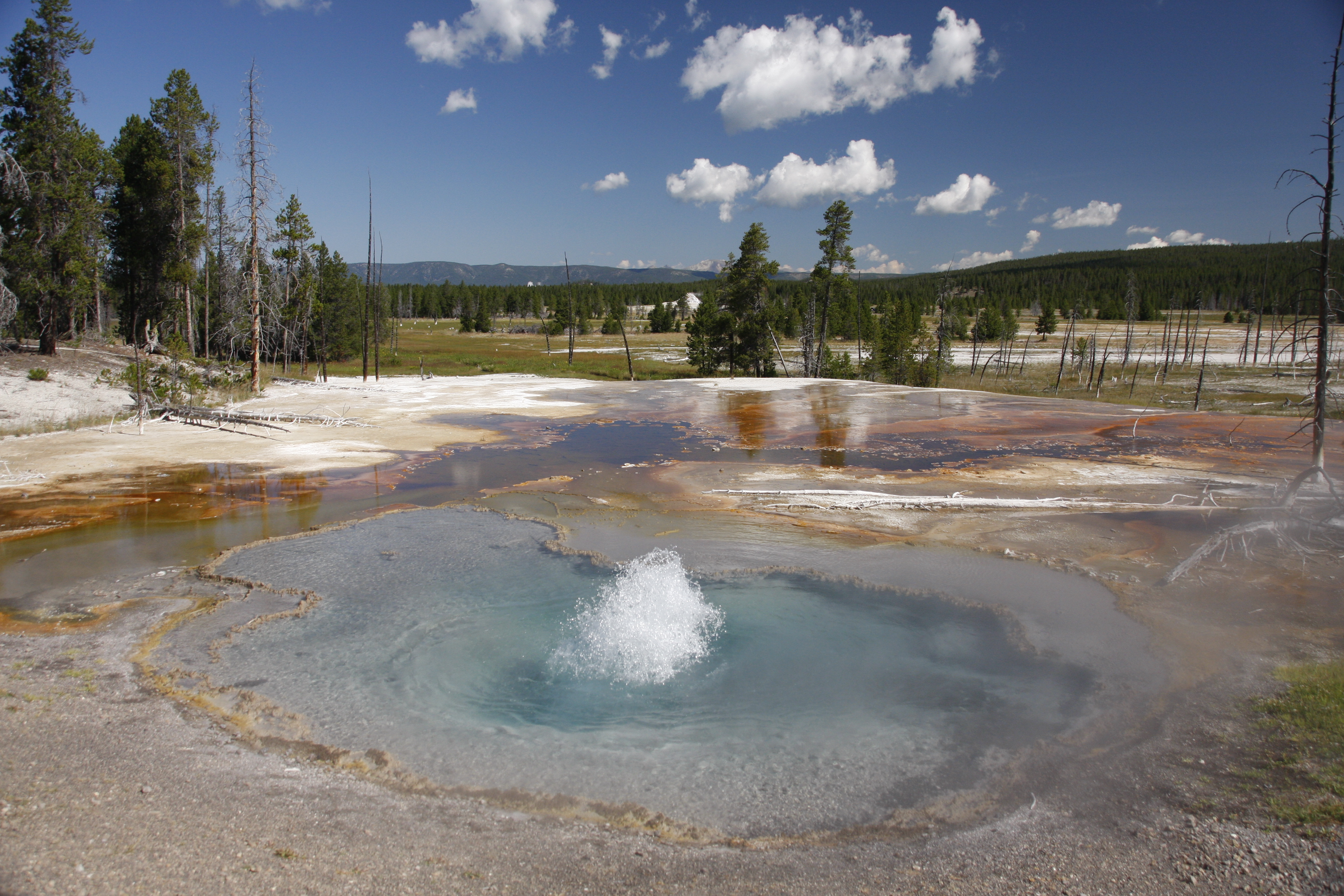 die meisten Leute gehen hier achtlos dran vorbei, aber etwas Geduld wird hiermit belohnt: vorher – nachher (diese und alle folgenden Bilder aus der nahen Region um Old Faithfull herum)