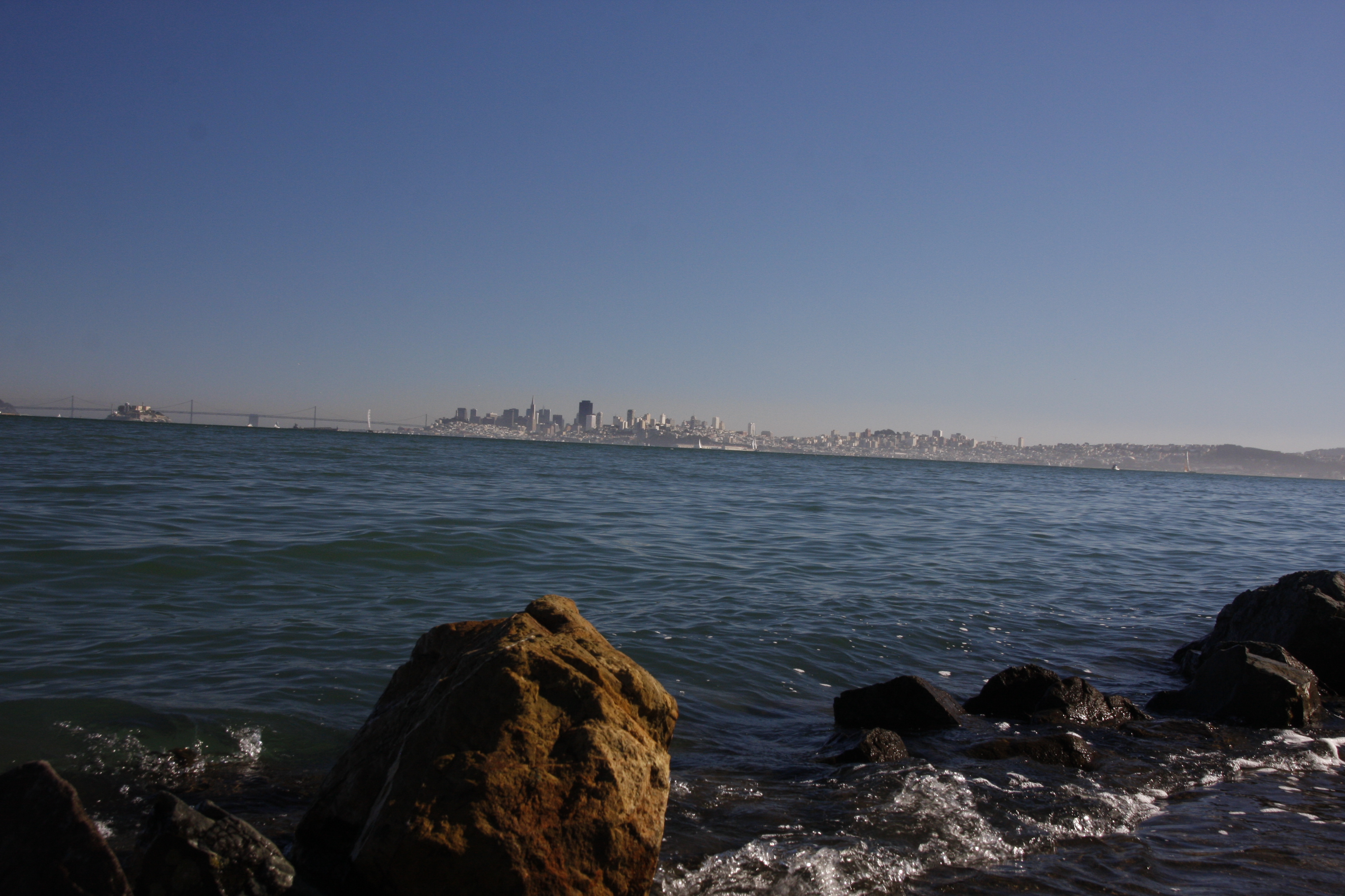 Aber soweit kommt es nicht. Es ist unglaublich, schon wieder Trailmagic! Wir haben uns gerade entschlossen, dass wir uns jetzt wohl mal um einen Schlafplatz kümmern sollten und fahren so friedlich von der GG-Brücke weg, als hinter mir dicht auf eine 1200-er GS mit Koffern erscheint. Ich lass ihn lieber vorbei, aber er will gar nicht vorbei. Er redet mich auf deutsch an. Wow! Lass uns mal an der Eck anhalten und quatschen! Wir erfahren, dass er hier in der Straße wohnt, hier lebt, und, wenn wir wollen, das Wochenende in seiner Wohnung verbringen dürfen, da er mit seiner Frau und deutschen Freunden in den Yosemite wandern fährt. Die Moppeds können in seiner Garage bleiben. Moment! Hab ich grad was verpasst? Wir sind fassungslos. Klar wollen wir. Und deine Frau weiß bescheid – noch nicht, aber alles ok… Es ist unglaublich, wir sind sprachlos! DAS GIBTS DOCH NICHT! Doch! Markus und Katie und wir sind mitten in San Francisco mit Blick auf die Golden Gate Bridge und den Pazifik und die Hausherren vertrauen uns ihre Wohnung, 2 Katzen, Blumen, und den Sauerteig an.