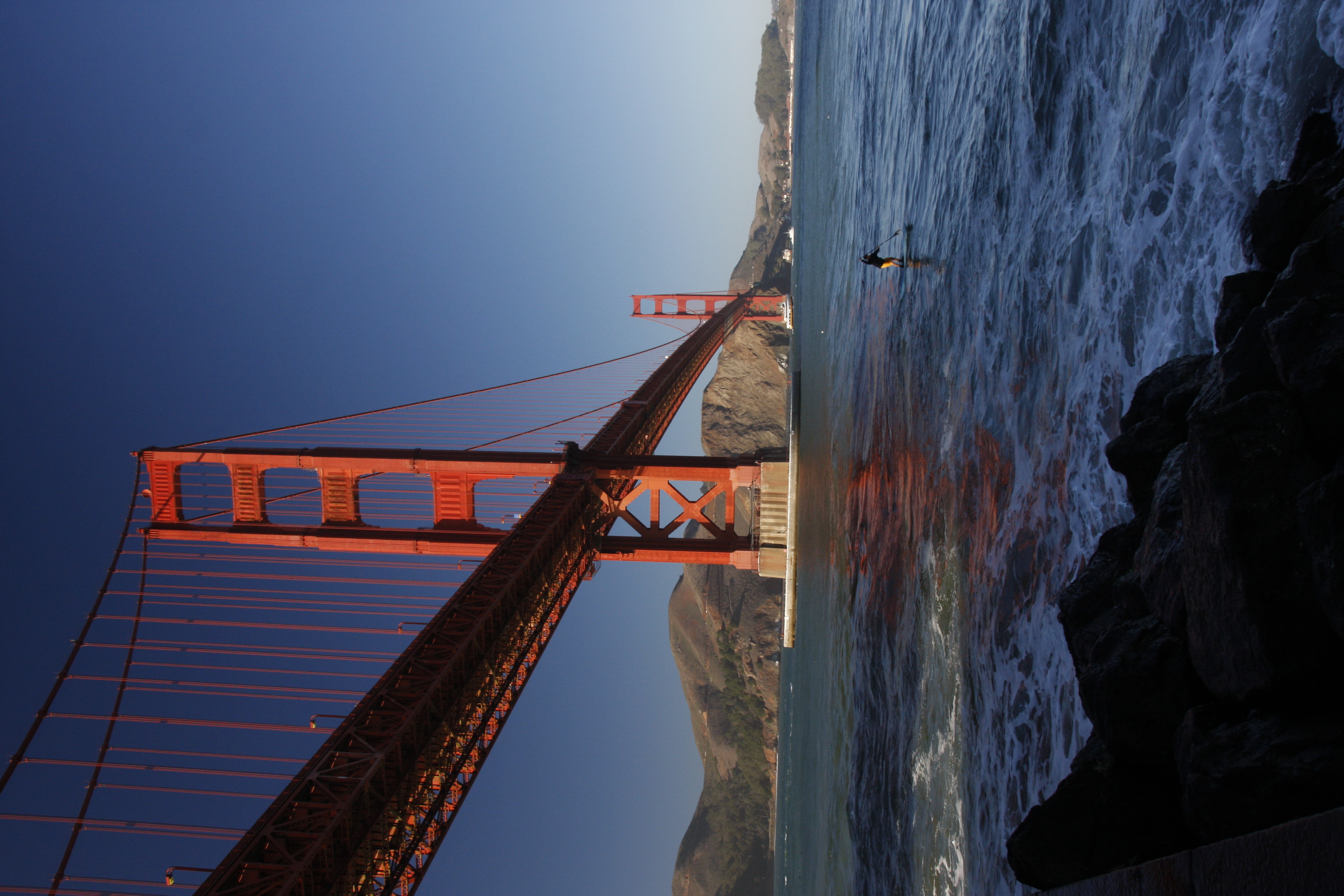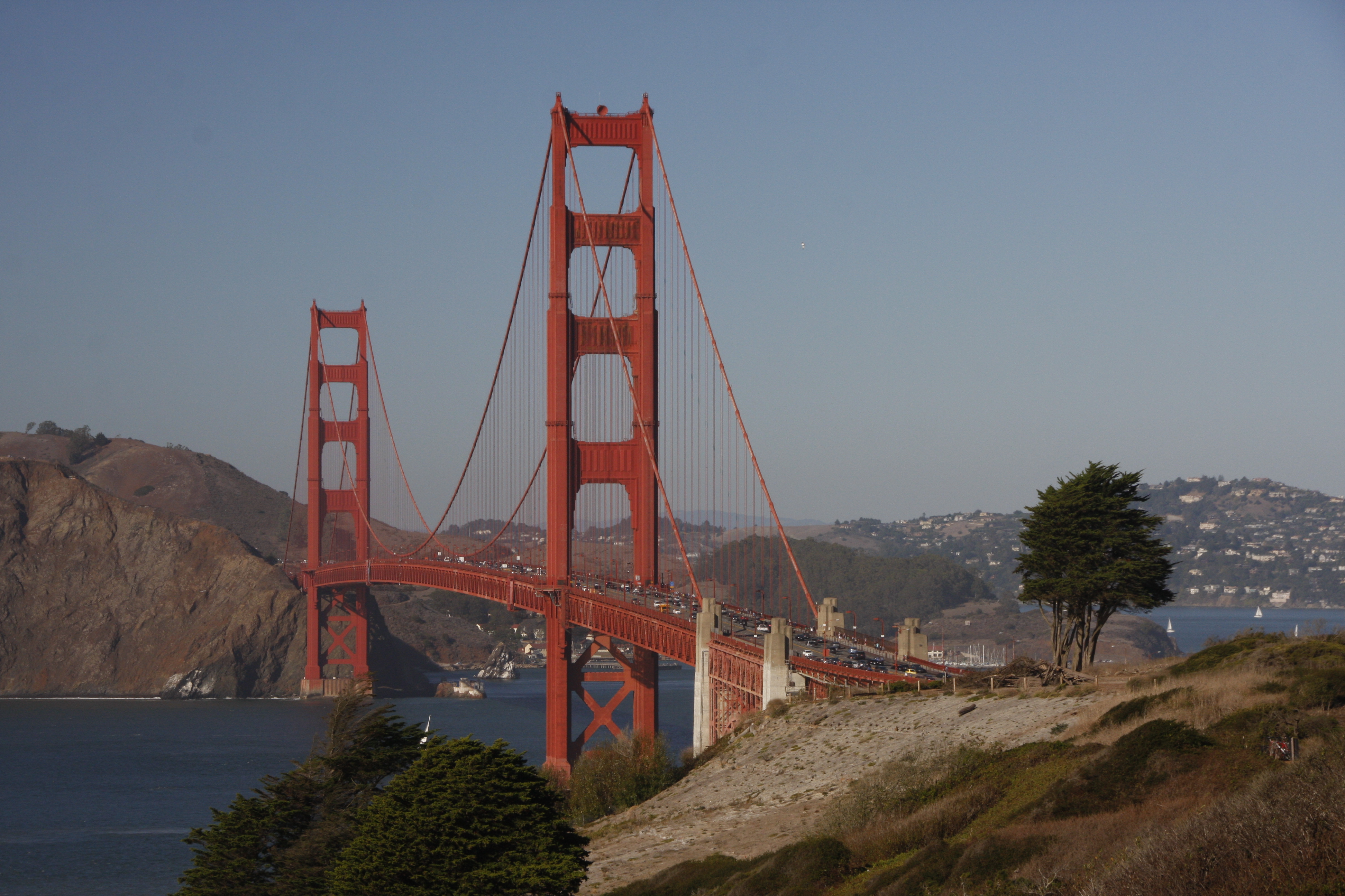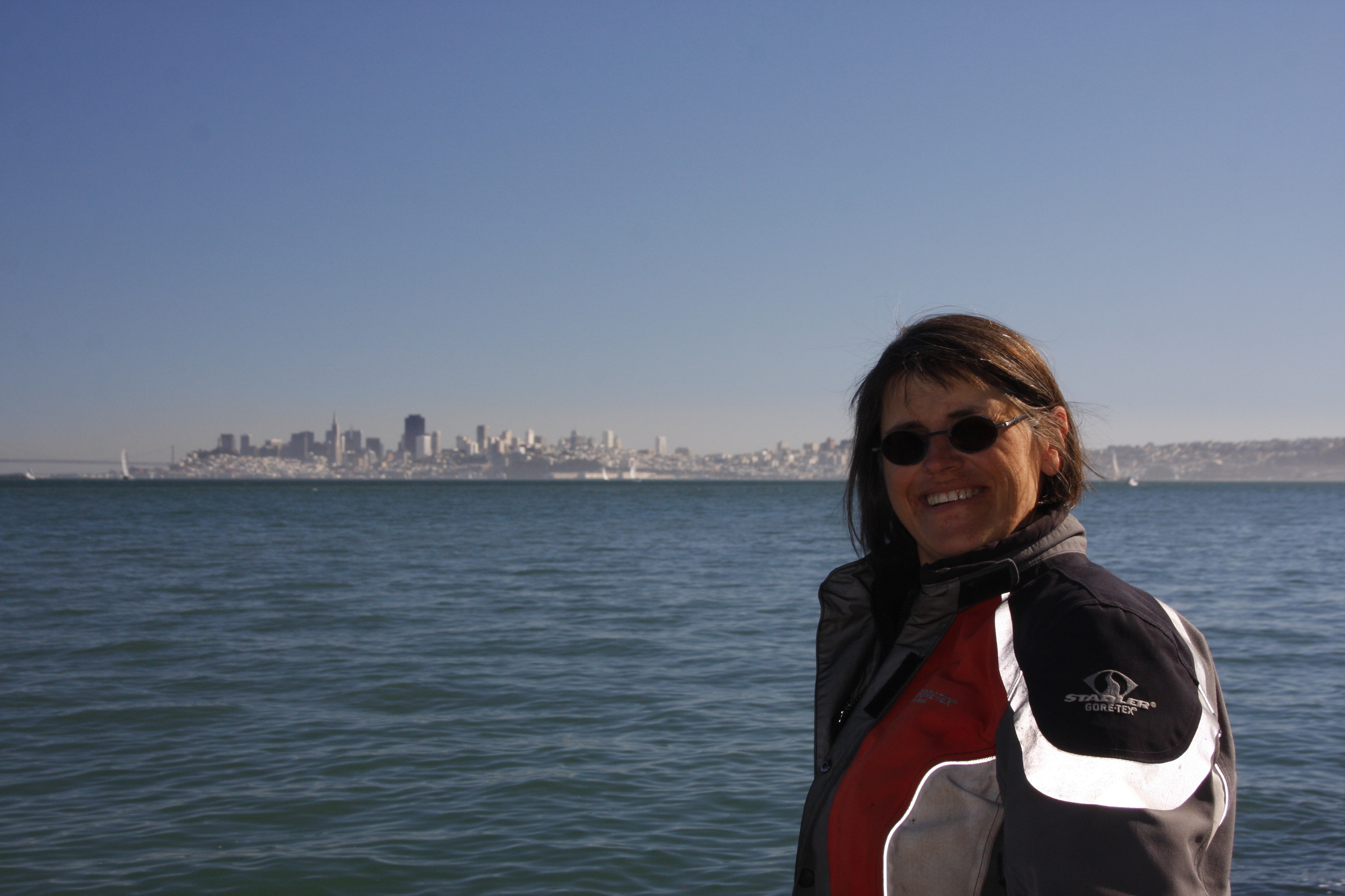 Endlich! Die Golden Gate Brigde – wow! Lange kenne ich sie nur von Bildern, und jetzt stehe ich neben ihr, unter ihr, fahre über sie – und kann die Gebühren nicht bezahlen, weil ich keinen „Token“ habe und keiner im Kassenhäuschen sitzt. Na bravo! Dann werden sie ja ein schönes Photo von mir/uns machen, denn als wir anhalten, hupen sie hinter uns. Anhalten is nich, zahlen auch nich – ja und nu? Weiterfahren. Dieses Problem haben wohl andere Touris auch, aber in den Mietautos wird das einfach elektronisch an die Agentur weitergeleitet und abgebucht, die die Gebühren dann bei der Rückgabe einfordern. Aber in unserem Falle? Wer kommt schon mit eigenem Fahrzeug nach Amerika??? Kommt nicht vor!