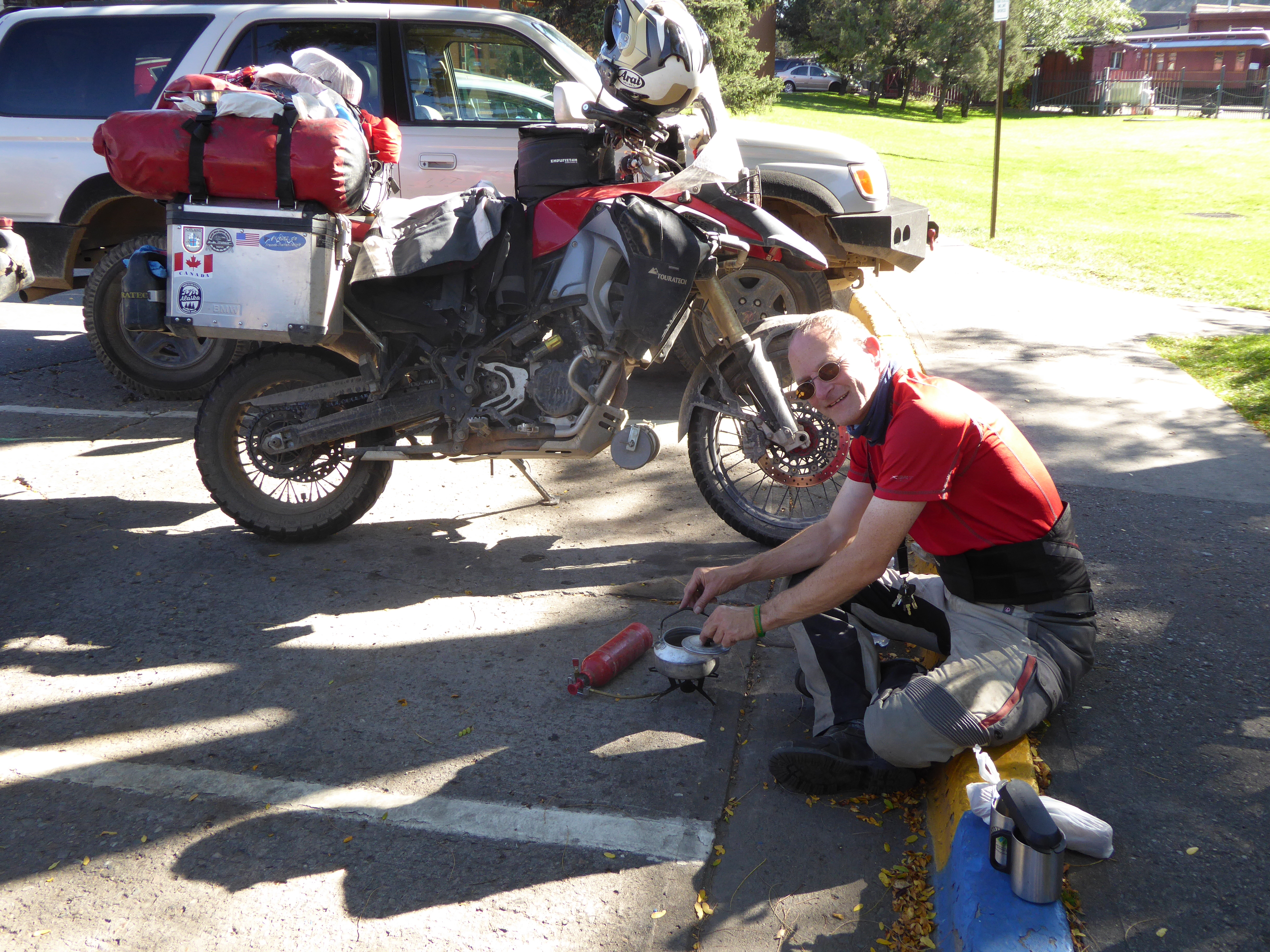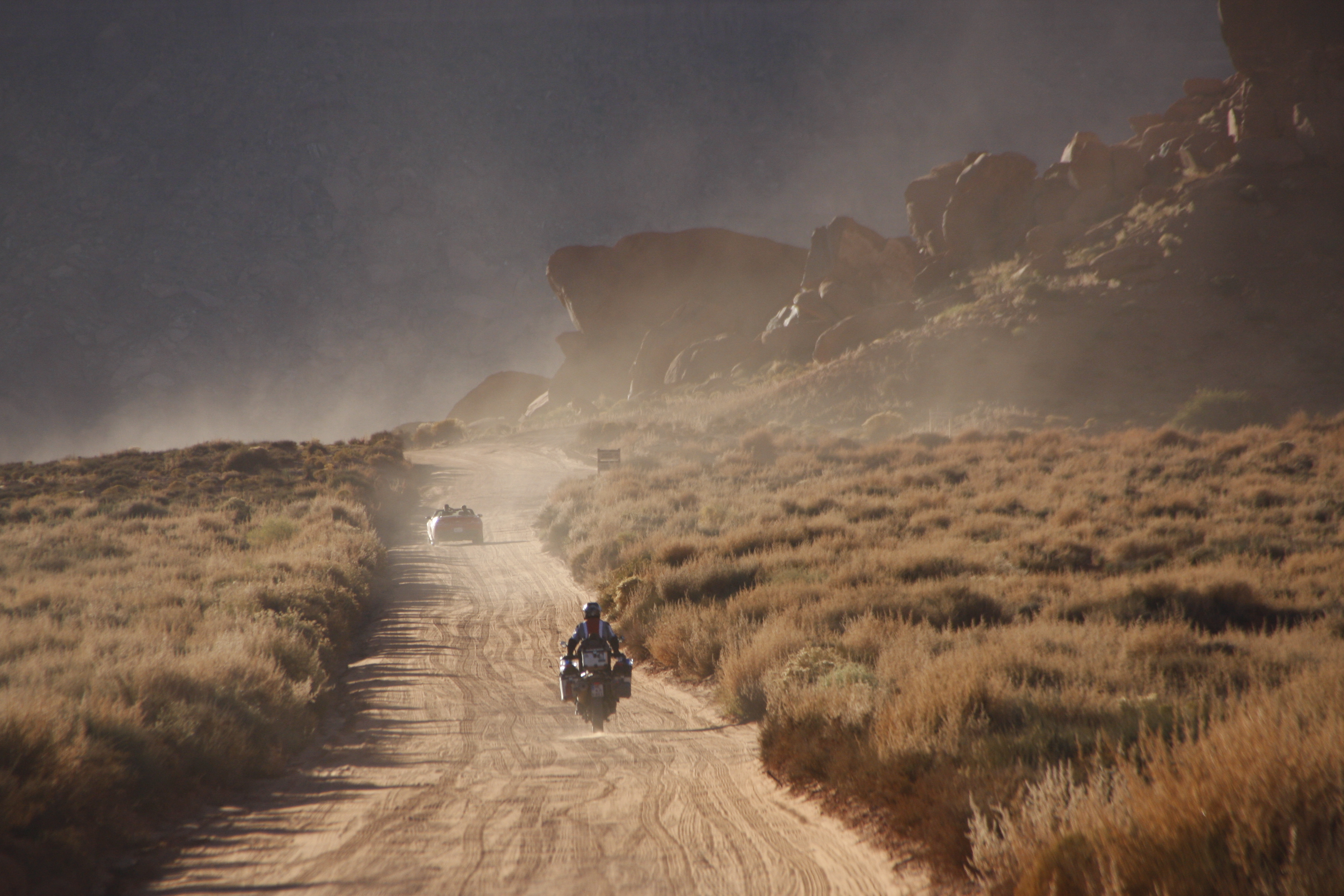 Es ist eine Touristenattraktion und es geht in einer langen Autoschlange durch den Loop. Die meisten sind in Leihautos unterwegs und nicht offroad-erfahren. Das merkt man deutlich. Für uns zu langsam, wird der nicht tiefe Sand und die leichten Felsenstufen doch erheblich einfacher mit etwas mehr Geschwindigkeit. In der untergehenden Sonne haben wir schnell alles gesehen, ich mag das eh nicht, wenn die Horden laut plärrend um einen herumschlawenzeln und saublöde Fragen stellen. „Did you ship them over?“ Nein, wir sind durch den Ozean gefahren! Auf dem Campingplatz hier sollen wir die Moppeds oben lassen und alle Sachen runter zum Zeltplatz schleppen. Die haben wohl den Knall nicht gehört. Jede Wasserflasche? Essen? Kochgeschirr, Benzinflasche, Zelt, Schlafsack, Matratze, Zahnbürste, Kleidung…? Das halbe Moppedgepäck runter schleppen? Dafür 20 Dollar? Oder das doppelte für einen RV-Platz in der Reihe…???? Danke, anscheinend möchten sie kein Geld verdienen. Sie denken, wir hätten keine Alternative? Doch haben wir! Schnell ist eine gefunden. Wunderschön und völlig umsonst. Ätschibätsch!