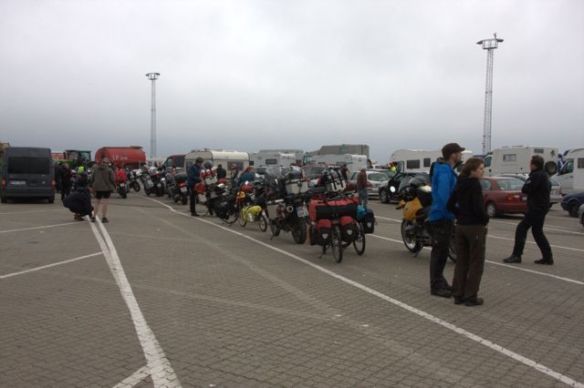 Um 6:40 Uhr stehen wir mitten in der Warteschlange vor der Fähre, meterweise und viel zu langsam schiebt sich der Lindwurm langsam vorwärts.
